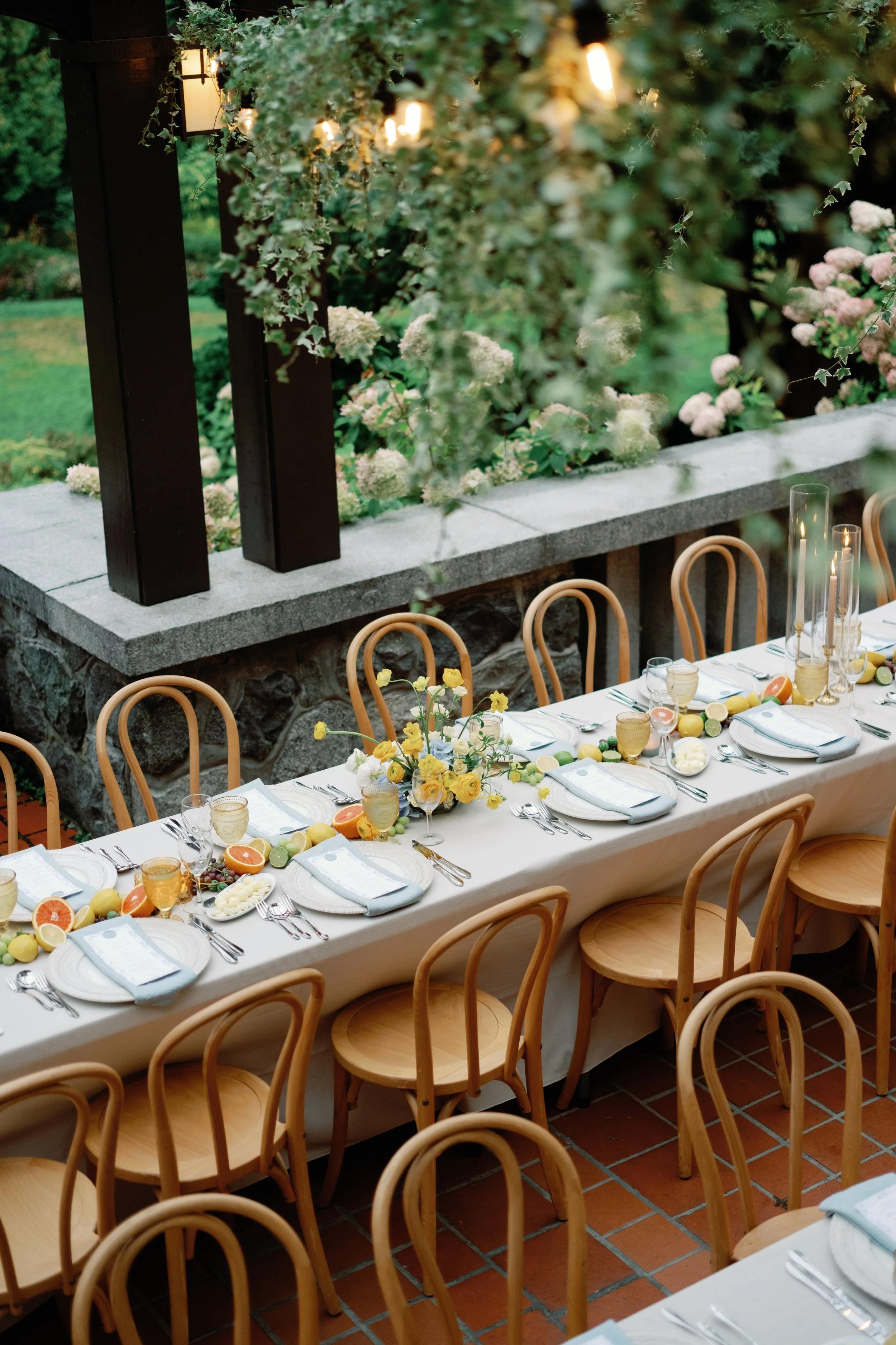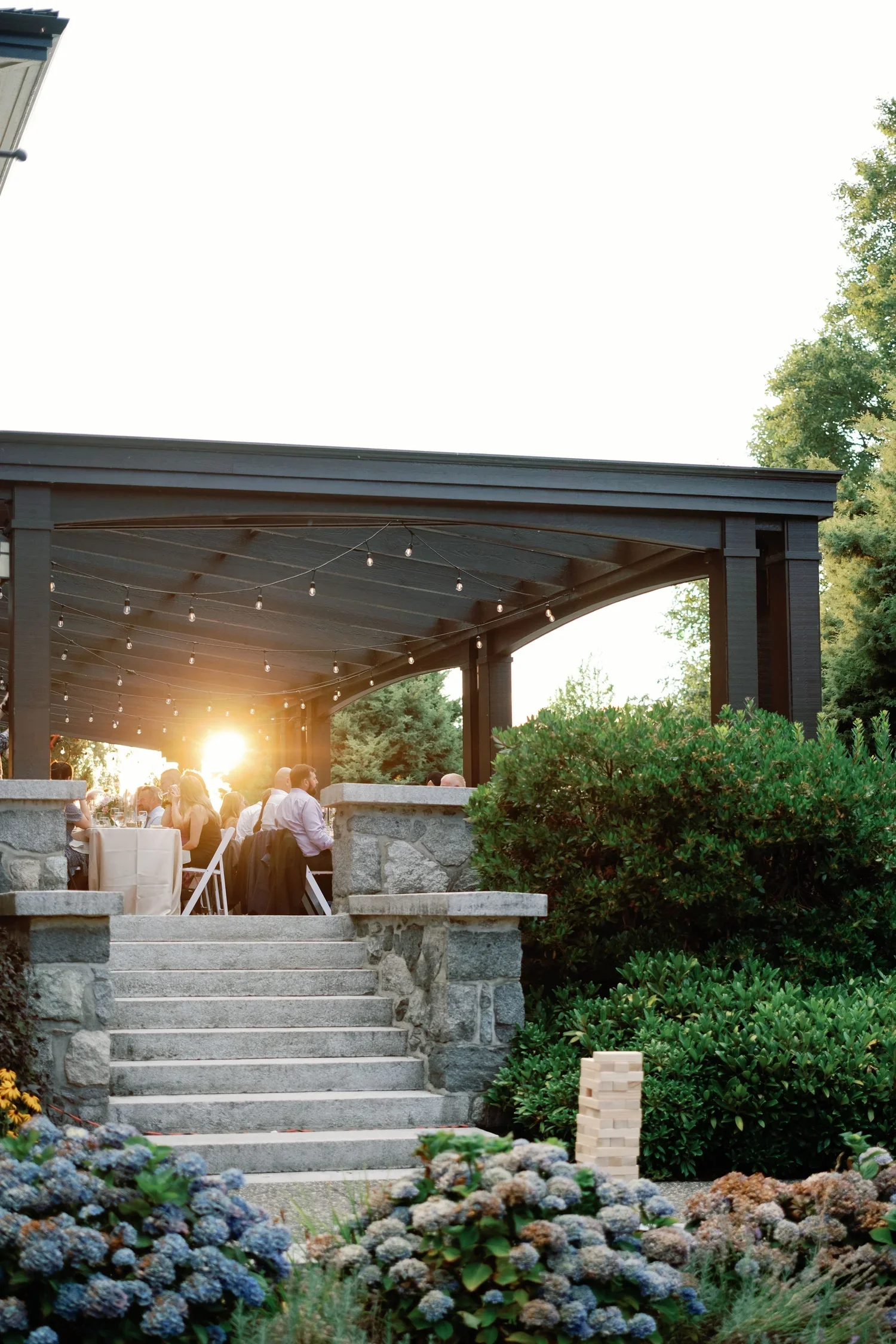 Walk down the cobblestone staircase descending into the private gardens at Cecil Green, expertly manicured and maintained by professional landscapers. The gardens offer exceptional rhododendron bushes, a lotus-flower-filled koi pond, magnolia and cherry blossom trees, Japanese Maple trees, and much more. Stunningly picturesque, our grounds are ready to welcome your wedding ceremony, afternoon barbeque, celebration, or photo shoot.TERRACE